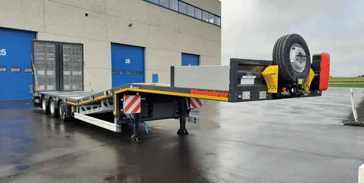 nombreux marchés grâce à cette solution polyvalente. Le véhicule est construit en acier ressort S700MC, ce qui limite son poids propre et réduit la consommation de carburant. » La K.SLA HS est livrée de série dans u ne configuration de 48 tonnes avec un essieu suiveur arrière, divers anneaux d’arrimage de 5, 8 et 10 tonnes et des consoles d’élargissement jusqu’à 3.150 mm.
