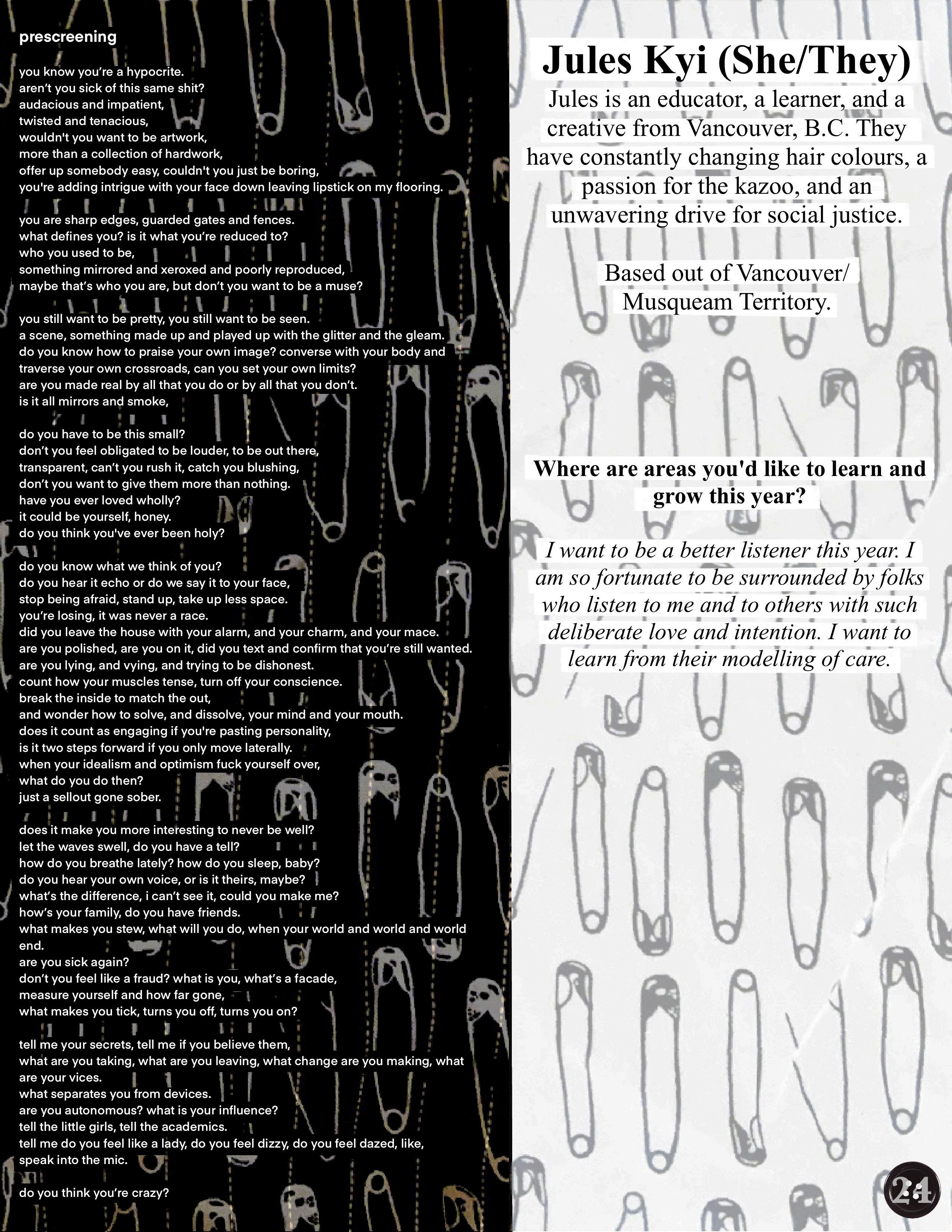 This issue features arts, crafts, poetry, prose and essay on topics of mending and what it means to our fantastic artists from across Turtle Island. From community building to self-exploration and expression, this issue covers it all! Also check out our colouring pages and missed connections column