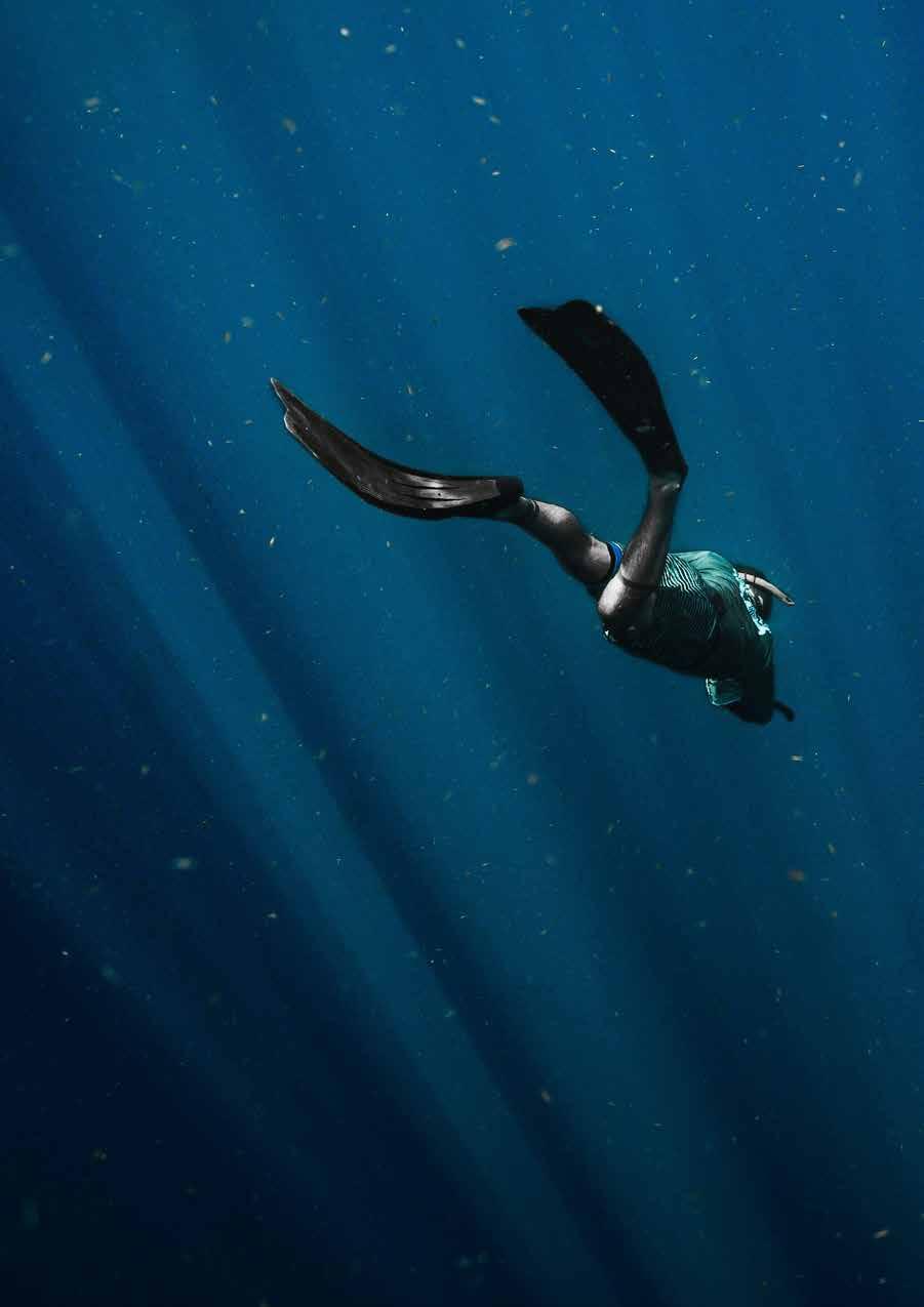 Ik begin mijn dagen graag in het water. Nog voor het ontbijt zwem ik rondjes om de boot, die rustig voor anker ligt in een beschutte baai, met de zon net boven de bergen. En soms, zomaar, dolfijnen naast me.