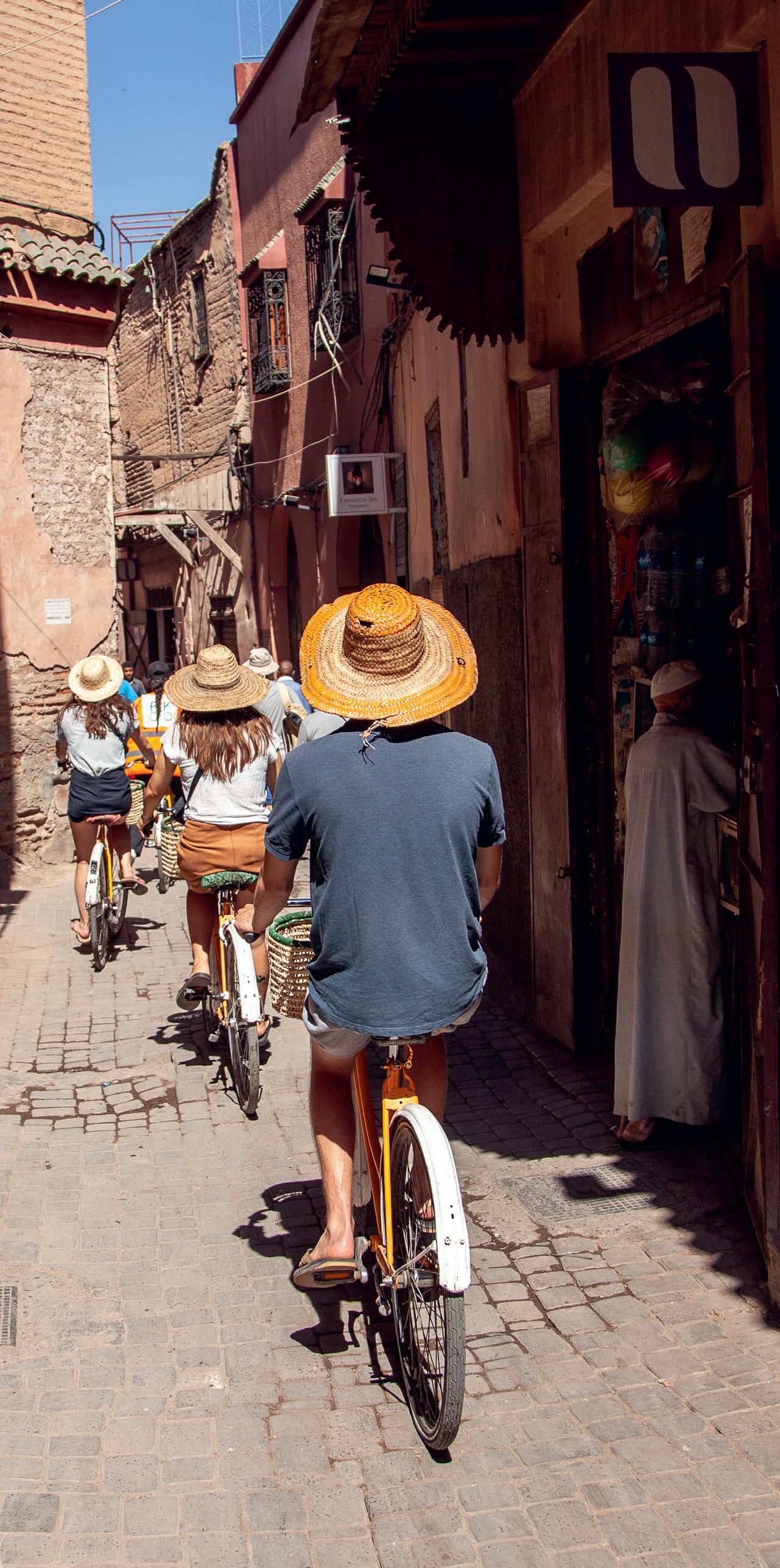 niet op de fiets zit. Terwijl ik dat ervaarde, dacht ik: dit wil ik delen, want dit moeten toeristen gaan doen.’ Maar haar idee ging verder dan alleen toerisme. ‘Marrakech heeft zijn uitdagingen, bijvoorbeeld op het gebied van stadsvervuiling en mobiliteit. Ik wilde iets ontwikkelen waarmee ik toeristen een fantastische ervaring kon geven en anderzijds een bijdrage kon leveren aan het verduurzamen van de stad. Het is geweldig wat je door toerisme kunt bereiken.’ De fiets opende meerdere deuren voor Cantal, die politici van over de hele wereld ontmoette, waaronder Mark Rutte (destijds minister-president van Nederland), VNvertegenwoordigers, CEO’s van grote bedrijven en Marokkaanse ministers. ‘Een goede relatie met de lokale autoriteiten is ontzettend belangrijk en hun waardering voor ons project wordt weerspiegeld in de geweldige locatie die ze ons hebben toegewezen, waar we niks voor hoeven te betalen.’