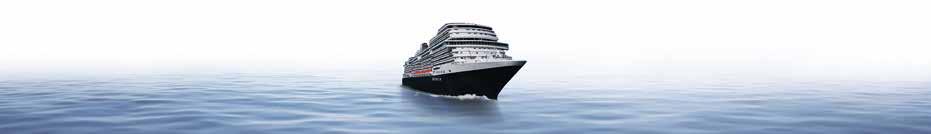 *Voorwaarden: Vermelde tarieven zijn gebaseerd o.b.v. een dubbele bezetting per hut. Inclusief belastingen, havengelden en heffingen en exclusief optionele Crew Appreciation. Weergegeven tarieven zijn non-refundable, dienen direct (aan)betaald te worden. Beperkingen kunnen gelden. Aanbiedingen zijn afhankelijk van beschikbaarheid en o.v.v. prijswijzigingen, druk- en zetfouten. Voor de volledige voorwaarden kijk op hollandamerica.com. Registratie schepen: Nederland.