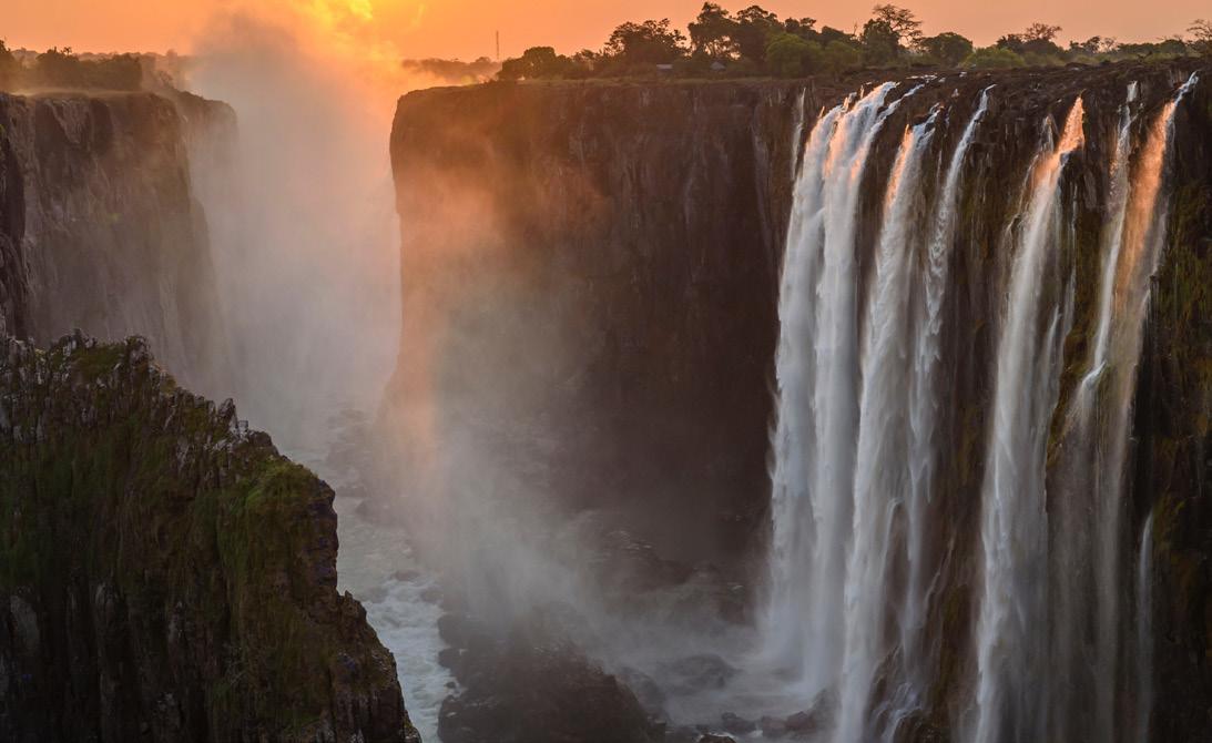 1. Victoria Falls – Zimbabwe. It goes without saying, Victoria Falls, known by the locals as Mosi-oa-Tunya (meaning “The Smoke that Thunders”) and located on the Zimbabwe-Zambian border, is remarkable spectacle of nature, and a one of the seven natural wonders of the world, boasting several principle gorges. Its spectacular, and also largest curtain of falling water measures 5,604