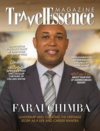 YEAR END ISSUE 2022 FARAI CHIMBA FARAI CHIMBA LEADERSHIP AND CURATING THE HERITAGE STORY AS A LIFE AND CAREER MANTRA GLAMPING ON SHARJAH’S COAST AT KINGFISHER RETREAT BY MYSK Chasing Waterfalls:AFRICA’S 8 MOST SPECTACULAR CURTAINS OF FALLING WATER WHOLESOME FOOD EXPERIENCES AT TONGABEZI BY GREEN SAFARIS What you’ll love ABOUT YOUR STAY AT ADDRESS BEACH RESORT