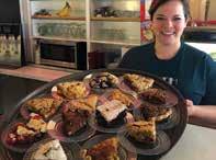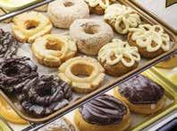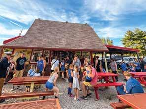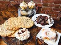 Indulge your sweet tooth with made-fromscratch goodness at Das Dutchman Essenhaus in Middlebury. For sugary doughy goodness, you can’t go wrong with the doughnuts, cinnamon rolls and other treats, and don’t forget to take home any of the two-dozen-plus varieties of delicious pie. Main Street Roasters in downtown Nappanee exudes warmth and aroma, drawing patrons in with the promise of delightful treats. From flaky croissants to decadent muffins bursting with seasonal fruits, every pastry is hand-crafted with care and expertise. Indulge in their signature cinnamon rolls or the decadent chocolate cake, with your favorite coffee creation.