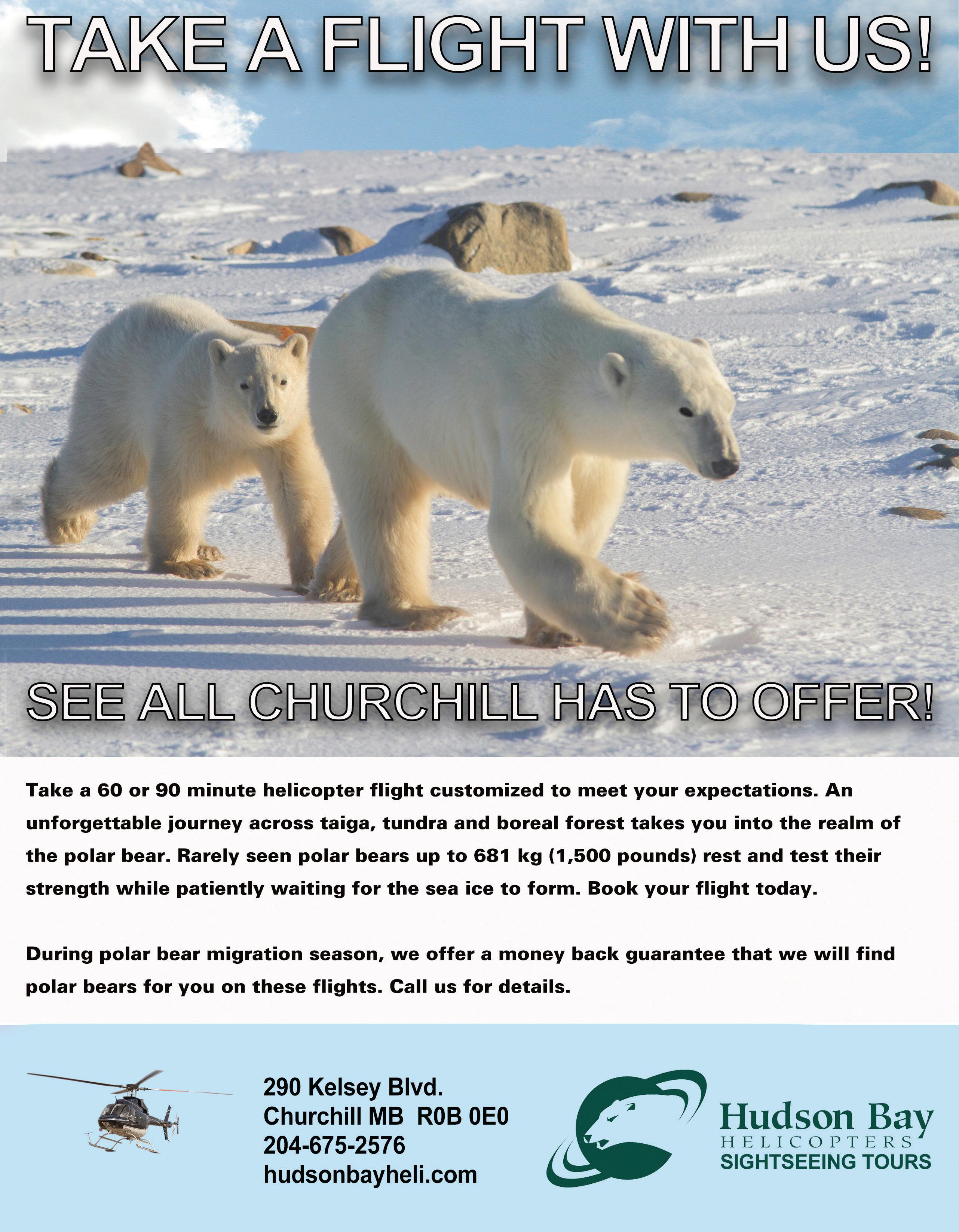 1. Churchill (page 34) est une destination de choix pour les amateurs de faune. Les ours polaires et les bélugas en sont les principales attractions, mais on peut aussi y voir des loups, des caribous, des orignaux, des renards roux, argentés et arctiques, des lièvres arctiques, des lagopèdes et des harfangs des neiges.