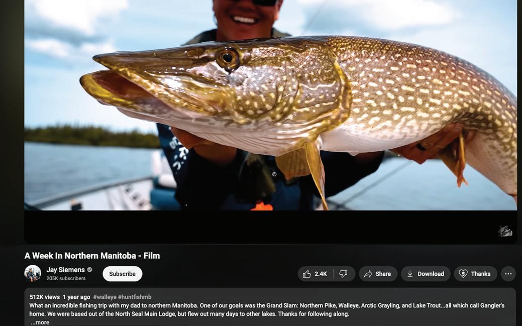 L’influenceur Jay Siemens accompagnera l’équipe de Chasse Pêche MB et tournera du contenu pour sa populaire chaîne YouTube. Avec plus de 188 000 abonnés et plus de 48 millions de visionnements au total sur YouTube, Jay Siemens et sa clientèle fidèle offrent une valeur incroyable à ce forfait.