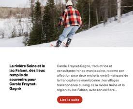 • Voyage Manitoba traduit les principaux articles de son blogue en français, et publie chaque mois un article destiné aux francophones.