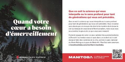 • Voyage Manitoba intègre les médias francophones clés dans chacune de ses campagnes saisonnières, y compris la presse écrite, la radio, les panneaux d’affichage et les médias sociaux.