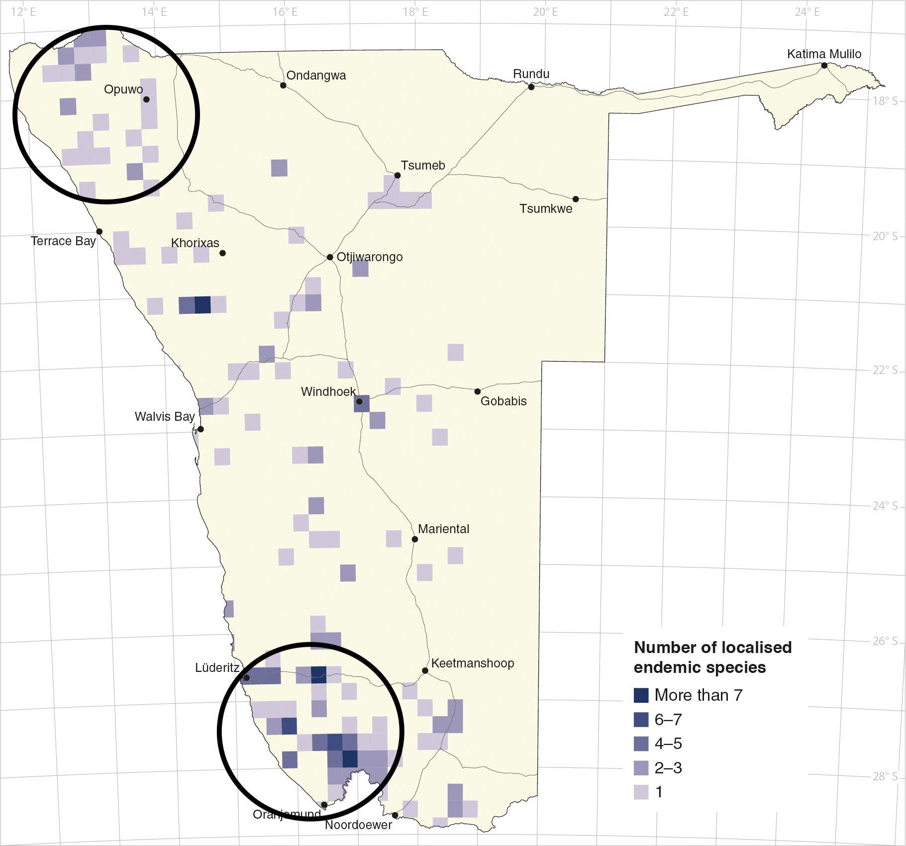 ENDEMIC BIRDS including Herero Chat, Rockrunner, Damara Tern, Monteiro’s Hornbill and Dune Lark frog species 15%