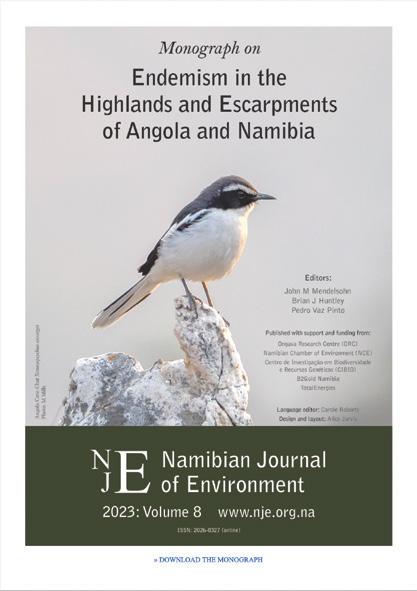 The editorial content of Conservation and the Environment in Namibia is contributed by the Namibia Chamber of Environment, freelance journalists, employees of the Namibian Ministry of Environment, Forestry and Tourism (MEFT) and NGOs. It does not necessarily reflect the opinions or policies held by MEFT or the publisher. No part of the magazine may be reproduced without written permission from the publisher.