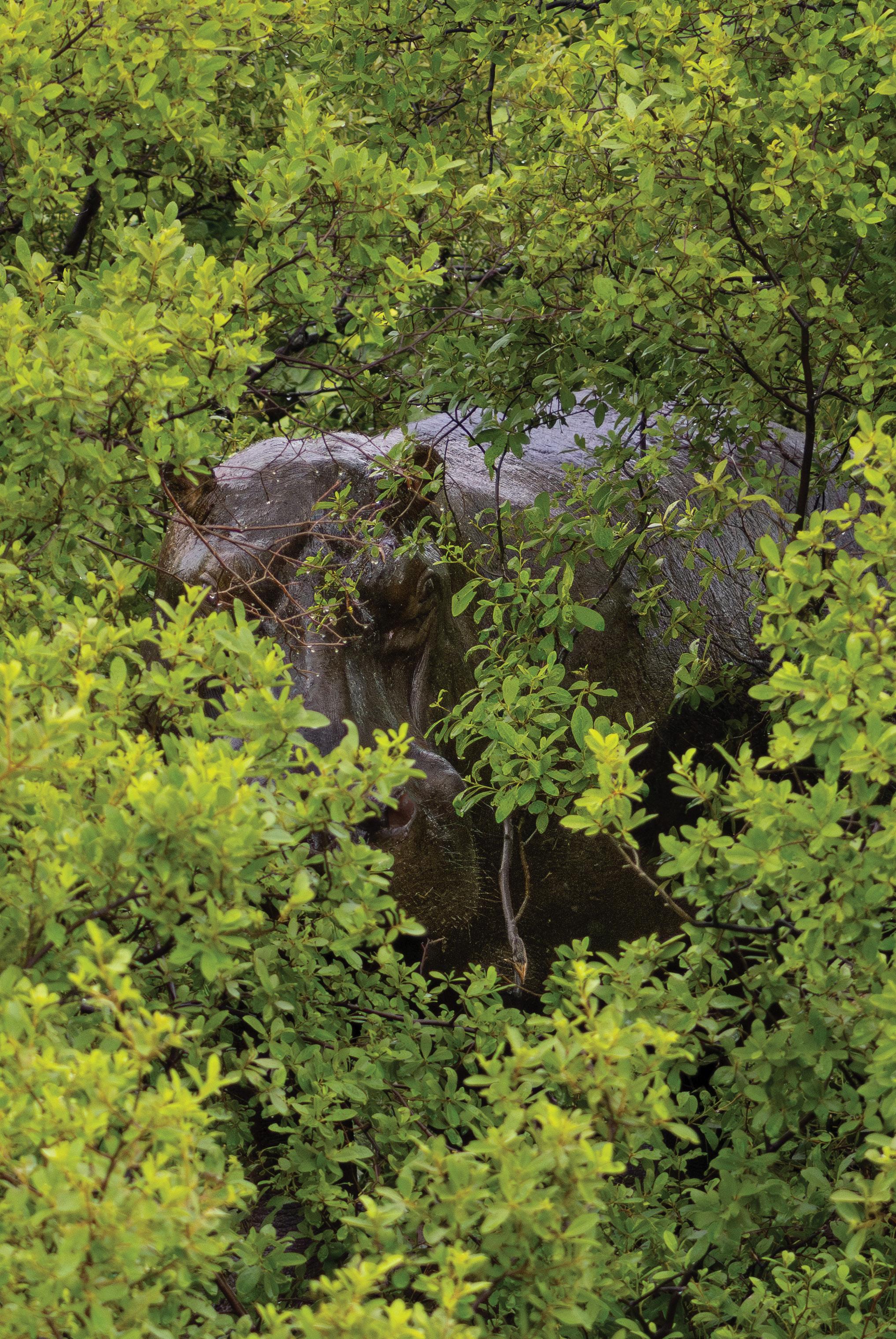 Half hidden in the lush green of the northern bush, the hippo stands still, unblinking. Just four metres between us, the air feels heavier, the moment thicker with quiet power. In that locked gaze, there is no movement, no sound, only the reminder that here, the wild is not a backdrop. It is present, aware, and always watching.