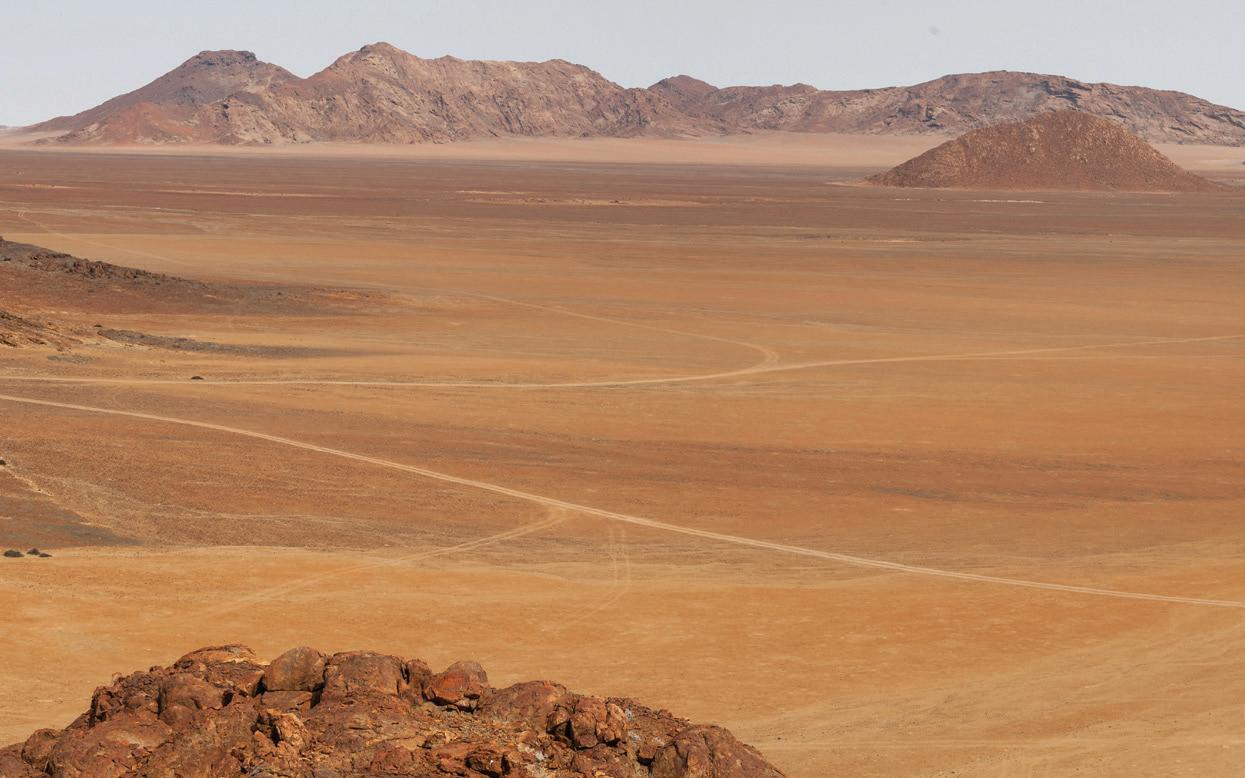 Ashort drive from Windhoek takes me into the beautiful bushland of the Khomas Highlands for an excursion to one of Namibia’s newest tourism gems. I find Gmundner Lodge, set on a 6,000 hectare farm, 35 minutes east of the country’s capital. As I enter through the gates, a baboon sits sentinel atop a Shepherd’s tree, keeping a watchful eye across his realm. The landscape is scattered with acacia bushland, undulating hills, and grazing wildlife. Red hartebeest, warthog, and steenbok flit in and out of bush and grass as I follow the gravel road further into the property. I round a few bends and the lodge, perched along the edge of a hillside, comes into few.