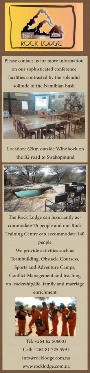 We acknowledge that information, addresses and contact persons may change from time to timethe information provided is what the publisher had available at the time of going to print. We appreciate being advised of any changes, omissions, updates and improvements. Amendments for the purposes of the Namibia Trade Network can be forwarded to daleen@venture.com.na.