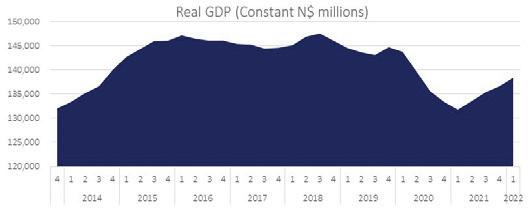 Since 2016, Namibia has been hit by a series of negative events, including a commodity price downturn, an extended sub-continental drought and, like the rest of the world, the Covid-19 pandemic. The combination of these negative trends has amplified the cyclical nature of Namibia’s economy.