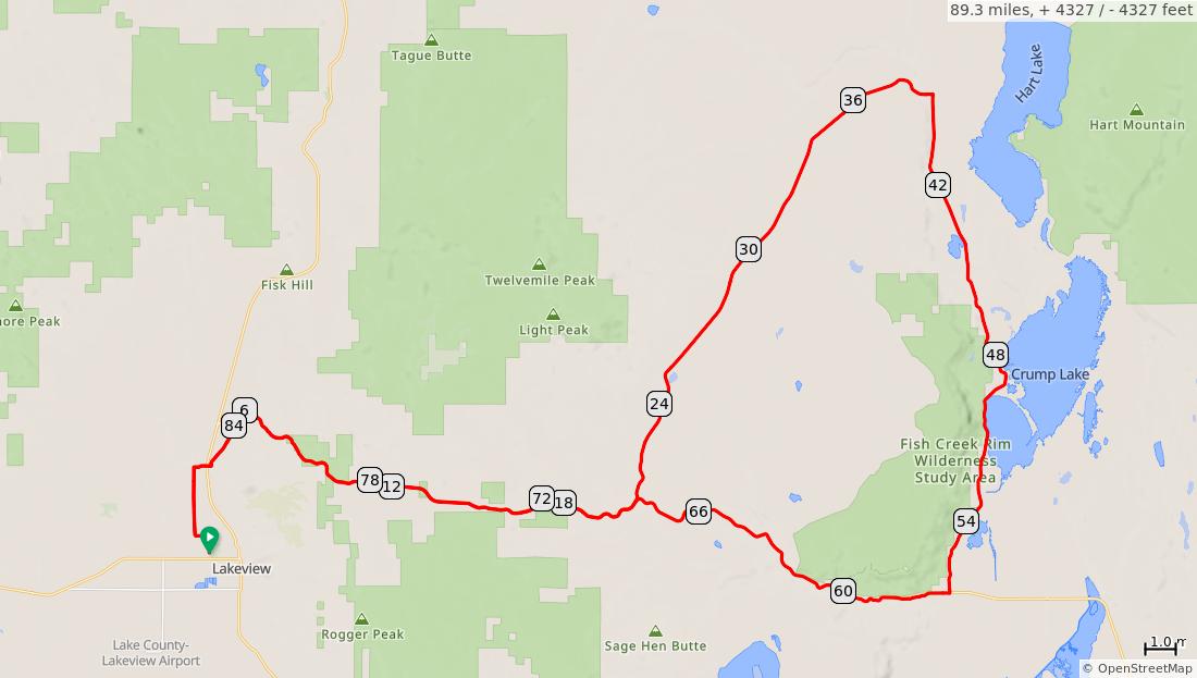 Num Dist Prev Type Note Next 1. 0.0 0.0 Start of route 0.0 2. 0.0 0.0 North on Roberta Rd Scenic Bikeway route starts at the west entrance to Lake County Fairgroun ds 0.5 3. 0.5 0.5 L on Missour i Rd/Met zker Rd 0.4 0.5 miles. +6/-0 feet Num Dist Prev Type Note Next 4. 1.0 0.4 Continu e on Metzker Rd/Rab bit Hill Rd 2.2 5. 3.2 2.2 R on Willow Bridge Ln 0.4 6. 3.7 0.4 Continu e on Old Smokey Rd Exercise caution crossing US 395 2.1 7. 5.8 2.1 R on OR-140 3.4 5.3 miles. +323/-88 feet Num Dist Prev Type Note Next 8. 9.2 3.4 Continu e on OR-140 Warner Canyon Ski Area 0.5 9. 9.7 0.5 Continu e on OR-140 Warner Pass Summit5,845 feet 3.3 10. 13.0 3.3 Continu e on OR-140 Camas Snow Parkrestroom s, no water 7.5 7.2 miles. +241/-330 feet Num Dist Prev Type Note Next 11. 20.5 7.5 L on Plush Cutoff Rd 2.9 12. 23.5 2.9 Continu e on Plush Cutoff Rd Summit5,879 feet 15.4 13. 38.9 15.4 R on Plush Adel Rd Plushstore, water, restroom s 0.3 mile off route 17.5 25.9 miles. +584/-1526 feet