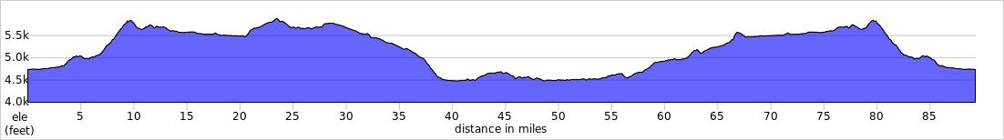 Num Dist Prev Type Note Next 14. 56.4 17.5 R on OR-140 Adelstore, restauran t, restroom s 2.7 15. 59.1 2.7 Continu e on OR-140 Deep Creek Falls 17.2 16. 76.3 17.2 Continu e on OR-140 Camas Snow Parkrestroom s, no water 3.4 37.4 miles. +1355/-245 feet Num Dist Prev Type Note Next 17. 79.6 3.4 Continu e on OR-140 Warner Pass Summit5,845 feet 0.5 18. 80.1 0.5 Continu e on OR-140 Warner Canyon Ski Area 3.4 19. 83.5 3.4 L on Old Smokey Road 2.1 7.2 miles. +5/-855 feet Num Dist Prev Type Note Next 20. 85.6 2.1 Continu e on Willow Bridge Ln Exercise caution crossing US 395 0.5 21. 86.1 0.5 L on Metzker Rd/Rab bit Hill Rd 2.2 22. 88.3 2.2 Continu e on Metzker Rd/Miss ouri Rd 0.5 23. 88.7 0.5 R on Roberta Rd 0.5 5.2 miles. +4/-129 feet Num Dist Prev Type Note Next 24. 89.3 0.5 End of route 0.0 0.5 miles. +0/-0 feet