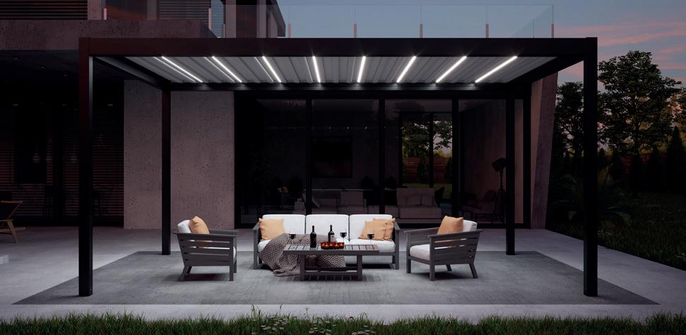 tarasowej bez względu na pogodę i porę dnia. Dodatkowo innowacyjność konstrukcji pergoli bioklimatycznych daje możliwość wyposażenia jej w automatyczny system regulacji. Zautomatyzowana pergola – to wygodniejszy dom. Pergola NUUN ECO to efektowne i funkcjonalne zadaszenie dedykowane prywatnym budynkom mieszkalnym, jak również przestrzeniom komercyjnym.
