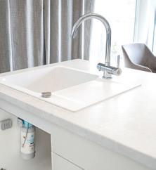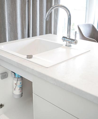 Wszystko to w ramach jednego, kompaktowego Systemu, który jest przyłączony bezpośrednio do ujęcia zimnej wody pod zlewem. Nie są widoczne zatem żadne rurki ani wkłady, ale jest odczuwalna wyraźna różnica w smaku i zapachu wody. Co ważne, sposób filtra cji możesz dostosować w zależności od poziomu twardości wody w Twoim domu.