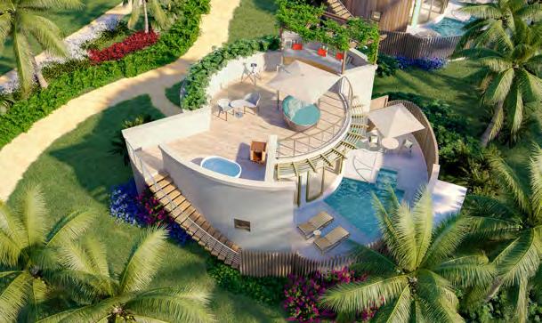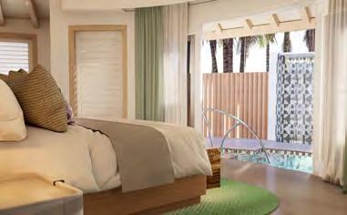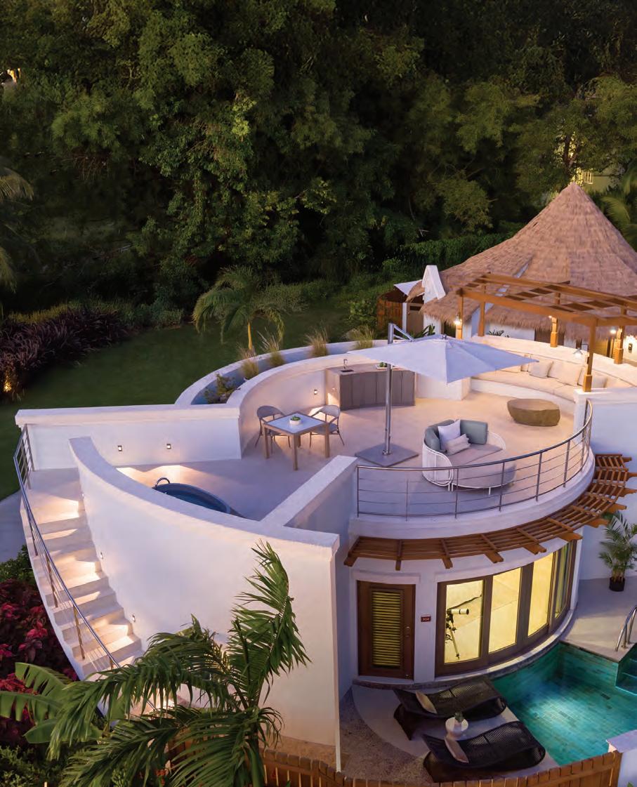Located along the edge of the Buccament Bay valley and surrounded by tropical gardens, the Rondoval Butler Villas range in size from approximately 1,000 to more than 2,000 square feet. Interiors feature king-size beds and spainspired bathrooms with double vanities, walkin showers and standalone bathtubs. Each villa also includes a private pool and outdoor soaking tub, fully stocked bar, 24-hour in-room dining and personalized butler service.
