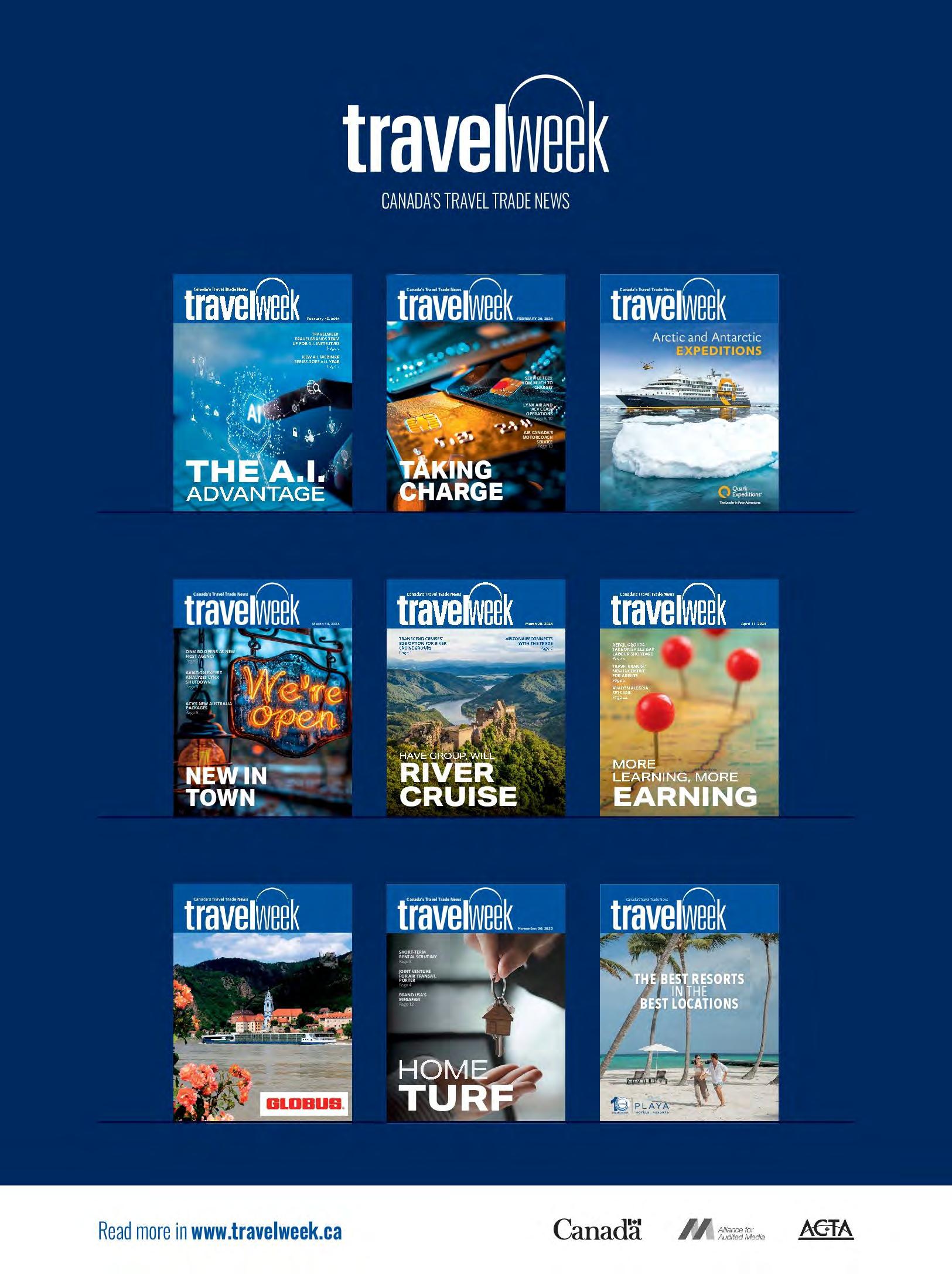 WEB: www.travelweek.ca For circulation inquiries please email circulation@travelweek.ca