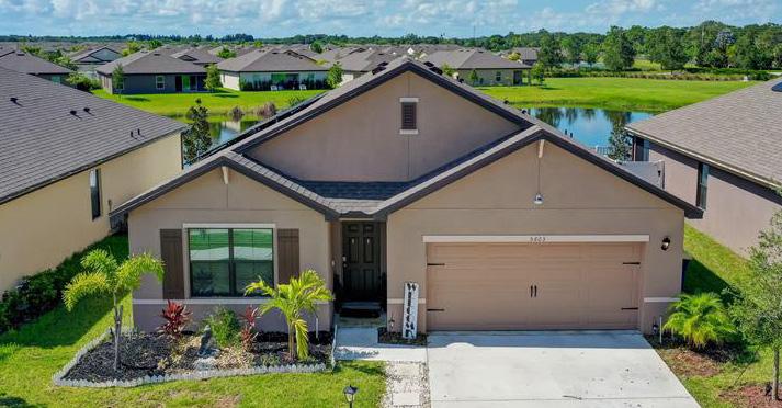 This 2021 ranch home has new PVC fence. Newly-tiled screened-in lanai with LAKE VIEW and back yard brick fire pit! Oversized closets. House features a Vivint smart home security system, 4 cameras and door/window sensors. Solar panels powering the home and allowing you to charge your smart car on Nema 14-50 level 2 charging port.