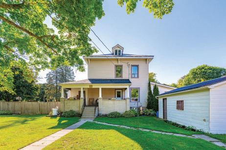 to 3 bedrm unit) & rent out the balance of the 4/5 plex. Lrg 24'x38' workshop. $745,000. Mount Forest: Functional & perfect for entertaining. 4 beds, 4 baths upstairs + 4pc ensuite. Lrg recroom w/ wet bar. Full fenced rear yard w/ stamped concrete patio. Lrg shed w/hydro. RBJDBRW $579,900. Mount Forest: Main fl. feat. original hardwood fl. & high trim. New Kit & apps. Bright main level & new reno'd mudrm/laundry & 2pc. Fully fenced backyard & shed w/ heat, hydro & gas. RBHWLFB $459,900. Mount Forest: Ground fl. end unit steps away from parking spot. Nicely renovated & feat. spacious Kitchen & Living rm. New flooring in BRs. Separate Dining rm & enclosed sun porch. RBJFZZB $559,000. Drayton: 3 BR home feat. Living room, eat-in Kitc & 3pc Bath & front porch converted to family room on main level. 3 BR's all w/ closets on upper level w/ 3pc Bath. Det. dbl car gar. RBJFMDG