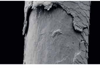 Hair is soft and shiny with the right amount of elasticity only if the cuticle is healthy and intact (that is, if the scales are smooth, regular and adhere well to the shaft).