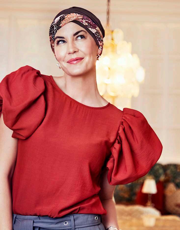 By using your favourite vintage scarf or a Boho ribbon it’s easy to add extra volume and uniqueness to your turban look. Here we’ve used Beatrice as a base model for an absolutely stunning head wrap look. But actually, you can choose nearly any model from our collections and make it unique and stylish by adding a little brooch, a ribbon or a headband. Just give it a go and make it your own kind of wonderful.