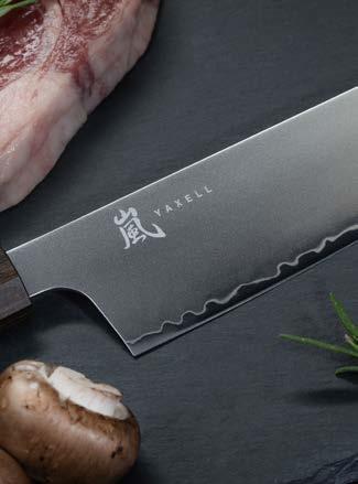 Met Hana gaat Yaxell nog een stap verder. De tien verschillende messen bestaan uit roestvrij staal dat is samengesteld uit chroom, molybdenum en vanadium. Het achthoekige heft is gemaakt van Kappa hout. De hardheid ligt het 58 Rockwell precies midden in de range van alle keukenmessen (tussen