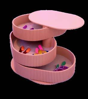 Met behulp van innovatief 3D-printen en gerecyclede materialen maakt Wavy opvallende objecten met kenmerkende golvende rondingen. Alledaagse voorwerpen worden zo omgetoverd tot blikvangers. Nieuw in het assortiment is de ruime, drielaags organiser voor sieraden. Een handige oplossing die niet veel ruimte kost om orde te scheppen in een warboel aan kettingen, armbanden, ringen en oorbellen. www.wavy-design.com