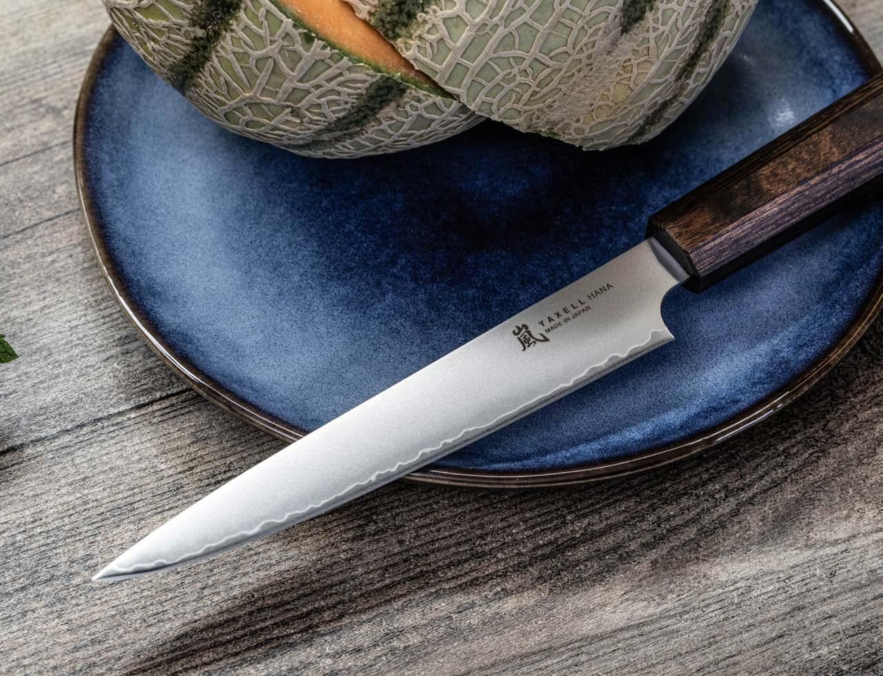 Een Japans mes – welke hobbykok wil er geen hebben in zijn keuken? Toch zijn er veel koks die een prijs van tweehonderd euro of meer te hoog vinden en de aankoop uitstellen, keer op keer. Die omvangrijke groep kunt u als winkelier toch bedienen met de Hana serie van Yaxell. Een Hana mes is licht van gewicht, bestaat uit drie lagen en heeft een hardheid van 58 Rockwell. Het voelt en snijdt als een Japans mes, maar het heeft niet de prijs die daarmee wordt geassocieerd. Met een winkelverkoopprijs tussen de € 89,- en de € 129,- is de drempel voor aankoop serieus verlaagd.