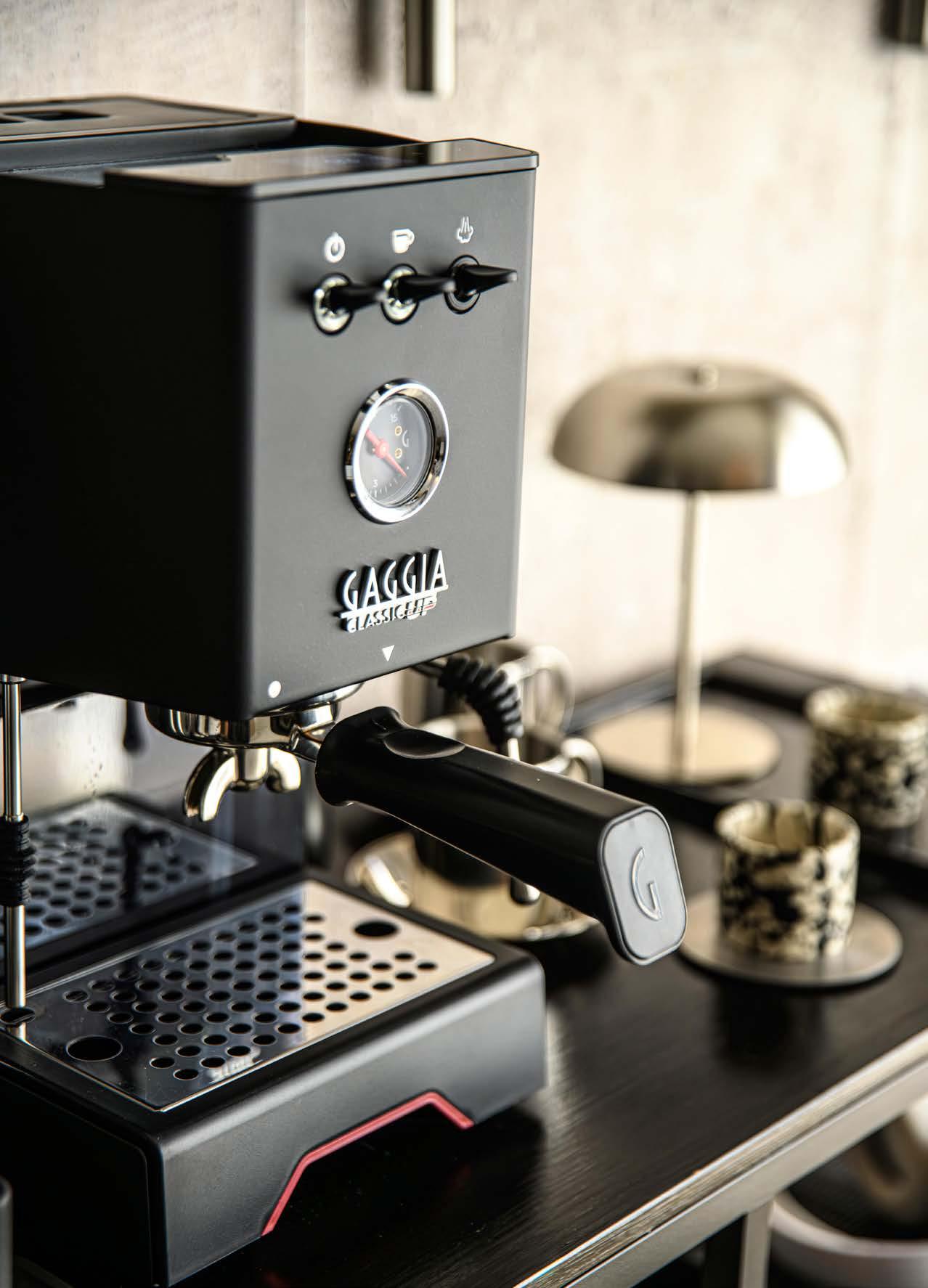 Tijdens de januari-editie van Maison & Objet viel het al op: de vermenging van espressomachines met leder. Als een automaat volledig door licht of donkerbruin leer omhuld wordt, krijgt het apparaat een heel andere look. Wat in zijn ‘kale’ metalen behuizing uitsluitend bestemd lijkt voor de keuken, kan ineens een plaatsje krijgen in de woonkamer. Dat geldt des te meer als het leer past bij dat van zetels en banken. In zo’n geval misstaat de espressomachine absoluut niet op bijvoorbeeld een bijzettafel of zelfs op een plank van de boekenkast. Dat het apparaat ook nog koffie tevoorschijn tovert maakte het alleen maar sfeervoller en aantrekkelijker.