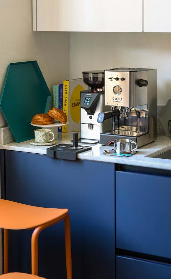 Het Italiaanse Giobagnara, gevestigd in Genua, levert dergelijke machines. Pikant detail: Giobagnara is geen producent van koffie-apparaten, het is, integendeel, gespecialiseerd in leder. Dit is dus een volledig nieuwe manier om onze machine aan te kleden, te presenteren en te situeren. Daar kunnen we wat van leren.