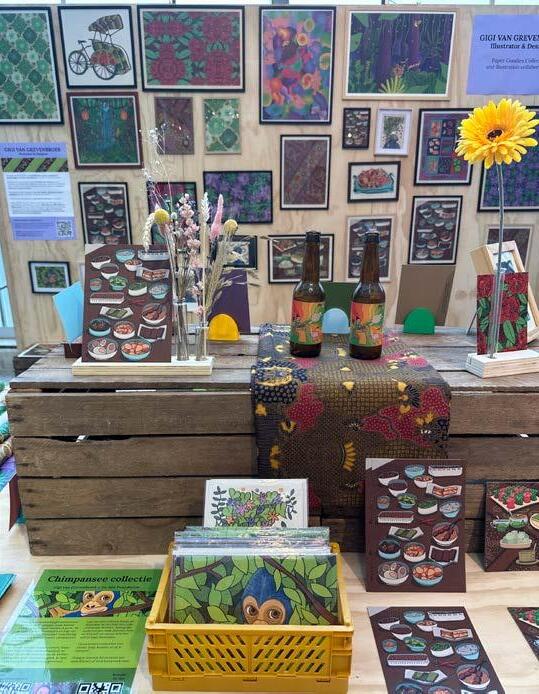 Gigi van Grevenbroek maakt kunst om van te smullen. Het kleur- en stijlgebruik van de prenten en ontwerpen zorgen voor een geheel eigen karakter. Haar inspiratie haalt zij uit de natuur en haar Indische achtergrond. Ieder stuk vertelt een eigen verhaal: van een koloniaal verleden en natuurbescherming tot vrouwenemancipatie. Naast eigen werk ontwerpt Gigi tevens in opdracht en samenwerking. www.gigivangrevenbroek.com