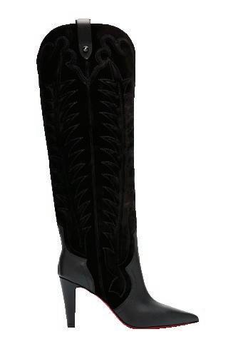 Christian Louboutin 85mm Santia Mixed Leather Suede Knee-High Western Boots