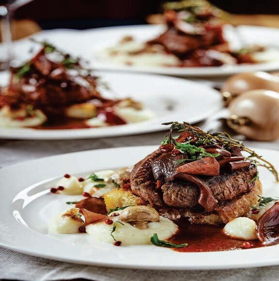 I have ever seen. Traditional shrimp scampi was anything but, and the calamari had the most crispy, delicate version I have encountered. Entrees consisted of a rich, fall apart barolo braised short ribs with a sinfully deep gorgonzola dolce sauce. The Faro Island salmon was nestled atop winter black truffle risotto and perfectly crisp asparagus. The chicken scarpariello transported me to Sunday in Nonna’s kitchen! Brandon’s wife Michelle hand prepares every dessert and although we were loosening our belts at this point, it was impossible to resist the decadence placed before us. Impossibly rich cannoli and homemade NY cheesecake were masterfully created. The tiramisu was light and deep at the same time. As Robert Palmer reminded us … Simply Irresistible
