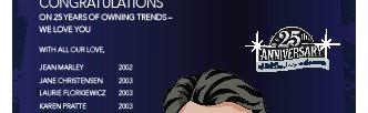 To say I was overwhelmed by the 14 full-page tribute ads from Fabulous Phoenicians and Fashionalities in this issue would be an understatement. I had no idea these were coming and I thank all of you sincerely. I joined the staff of Trends in January of 1994, I had no idea that 7 years later, I would be its publisher. I hope you enjoy the vast changes to the publication. Thank you from the bottom of my heart.