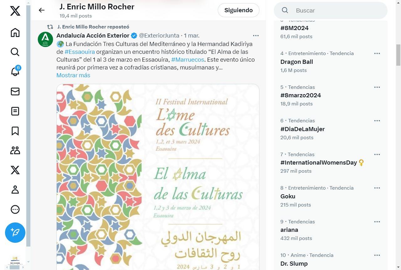 unasjornadasdeconvivenciaentrehermandadesmusulmanas,cristianasy judíasenlaciudadmarroquídeEssaouirabajoeltítulode«ElAlmadelas Culturas».
