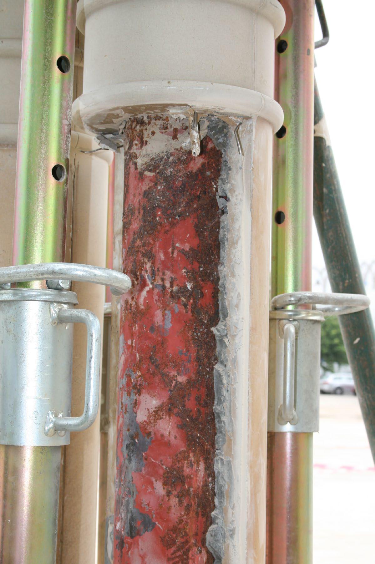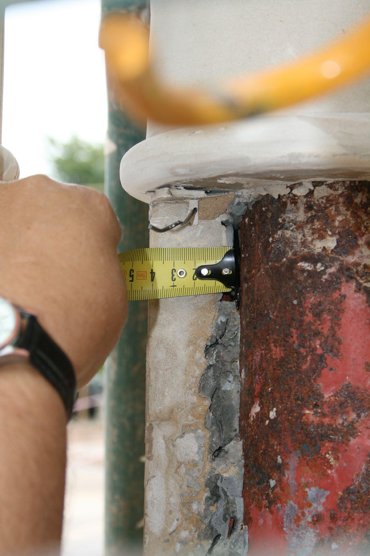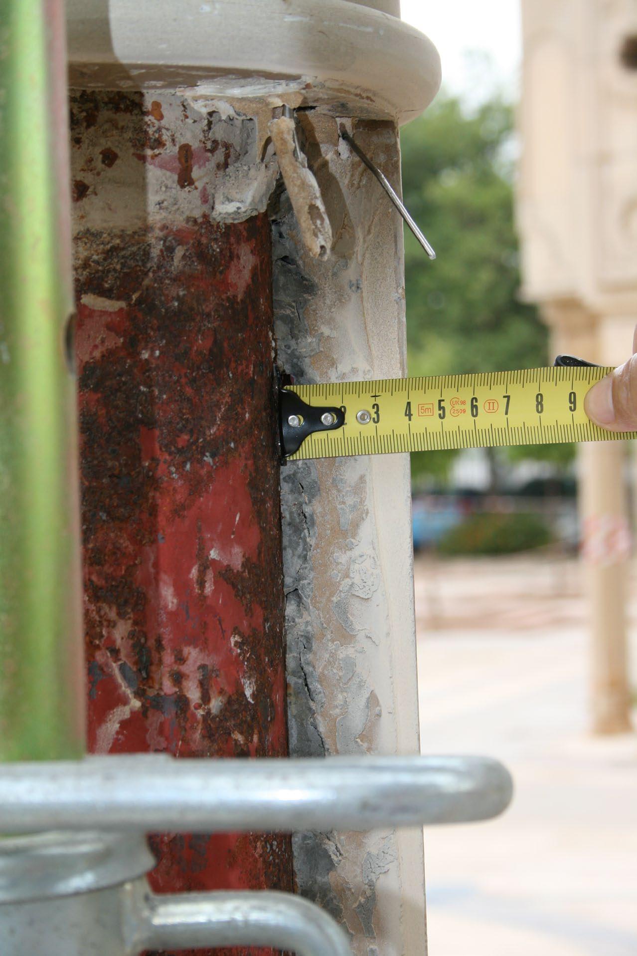 2. L’évolution de cette pathologie est continue, étant donné que l’augmentation du volume par oxydation du profil intérieur métallique, est progressive. La passivation de cette oxydation est prioritaire pour éviter la dégradation structurelle et que tout matériau de revêtement ultérieur, puisse évoluer correctement.