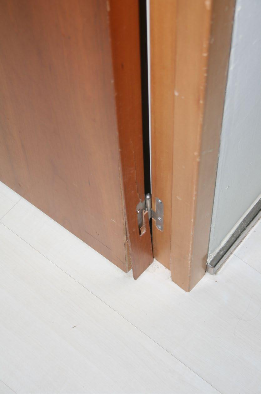 • PHOTO C02 : on observe que le vantail de la porte de la zone d’administration en direction des bureaux de la direction, s’est détaché Réparation moyennant collage.