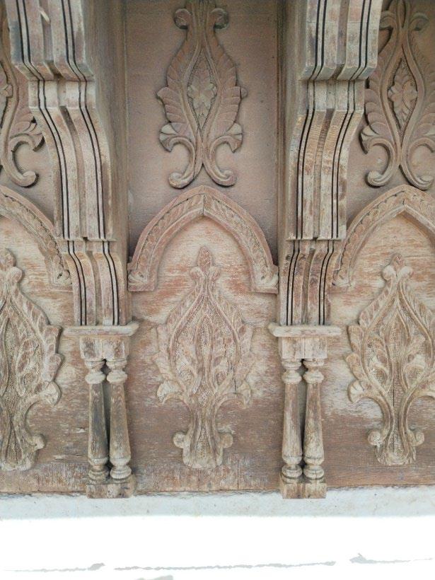 • PHOTOS E01 et E02 : on peut observer le détachement des plaques en bois qui recouvrent les poutres qui soutiennent la fontaine. On peut observer le détachement de celles-ci.