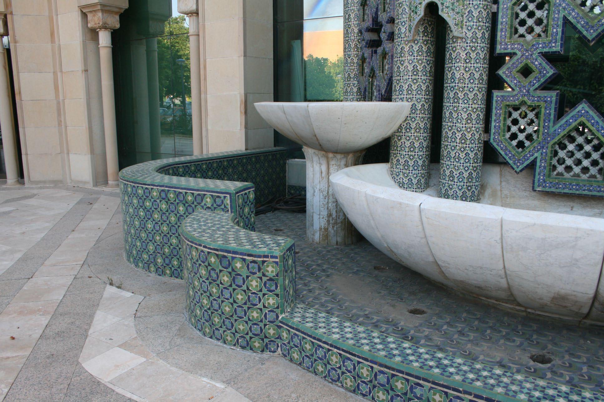 Pour le reste des éléments de revêtement, il faut prêter attention non seulement aux pièces de mosaïque, mais aussi, lors du nettoyage et lapréparation des parements, il est indispensable de prêter un soin particulier à la protection de l’imperméabilisation existant dans les vasques des fontaines.