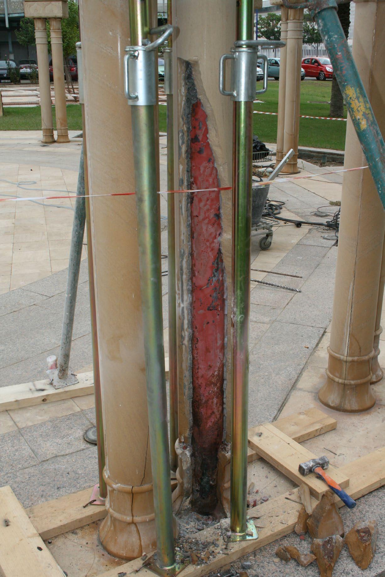 • La non-existence de risque permet de dégager l’étayage exécuté et il est recommandé la protection du profil métallique de la colonne protégée pendant qu’est examinée l’intervention nécessaire et l’application du revêtement.