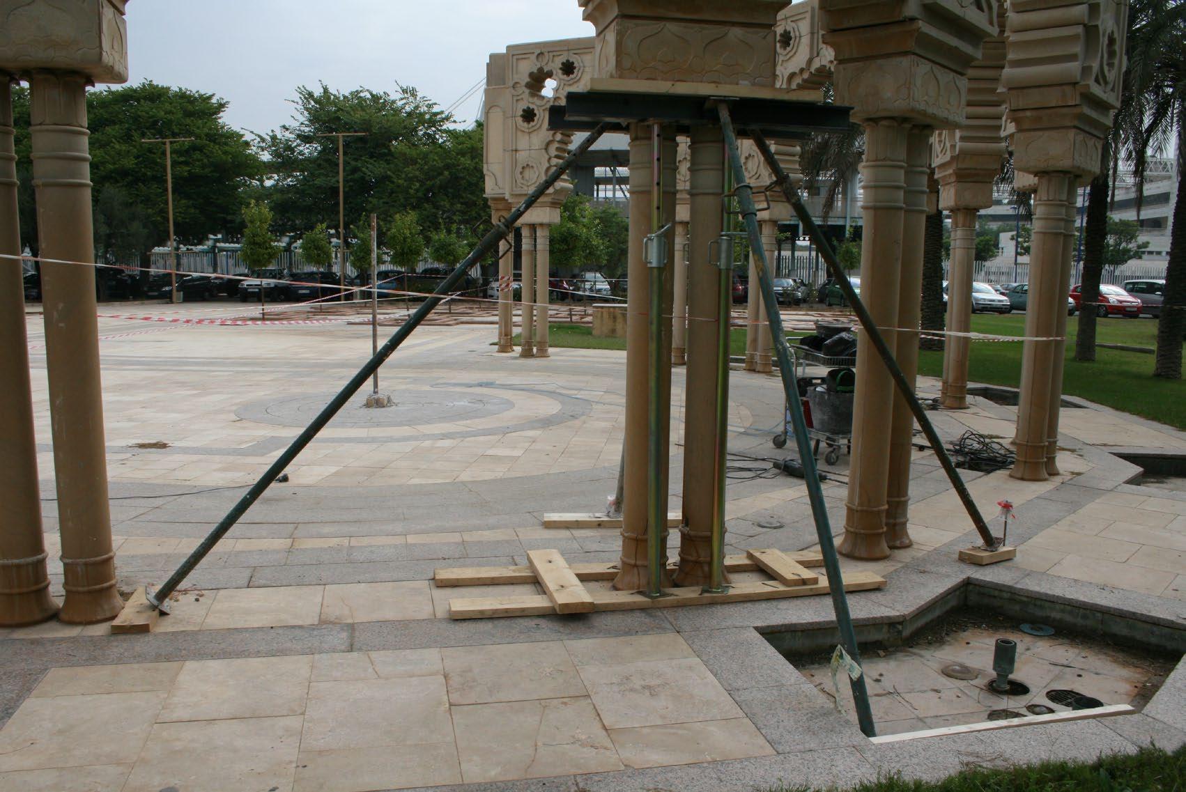 3. Les mouvements différentiels des colonnes (colonne 12) ne sont pas déterminants, contrairement aux problèmes qui sont survenus à la suite des pluies abondantes de l’année précédente. Nous souhaitons signaler à cet effet des données que nous soupçonnons pouvant affecter la stabilité générale de l’ensemble et quoique n’étant parmi les plus importantes, nous ne pouvons pas les ignorer à l’avenir : nous évoquons le fait que les conditions de remplissage de la sous-base des fondations et celles propres du sous-sol de l’enceinte de l’Expo, ne sont pas favorables pour que penser qu’ils peuvent être rejeter comme des causes futures d’affaissements différentiels plus importantes que celles qui existent à présent.