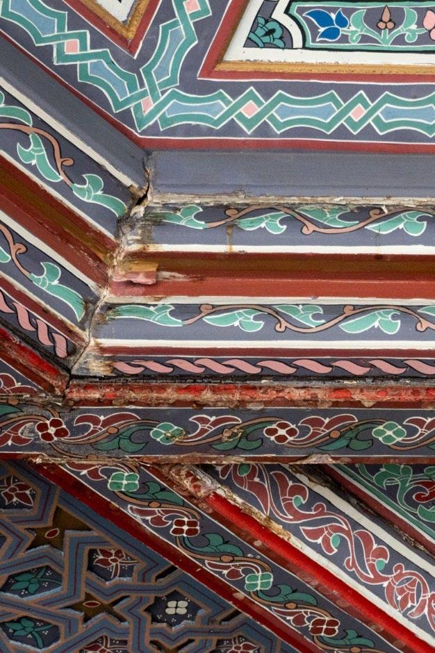 Le plafond à caissons en bois du dôme est sec et doit être traité.