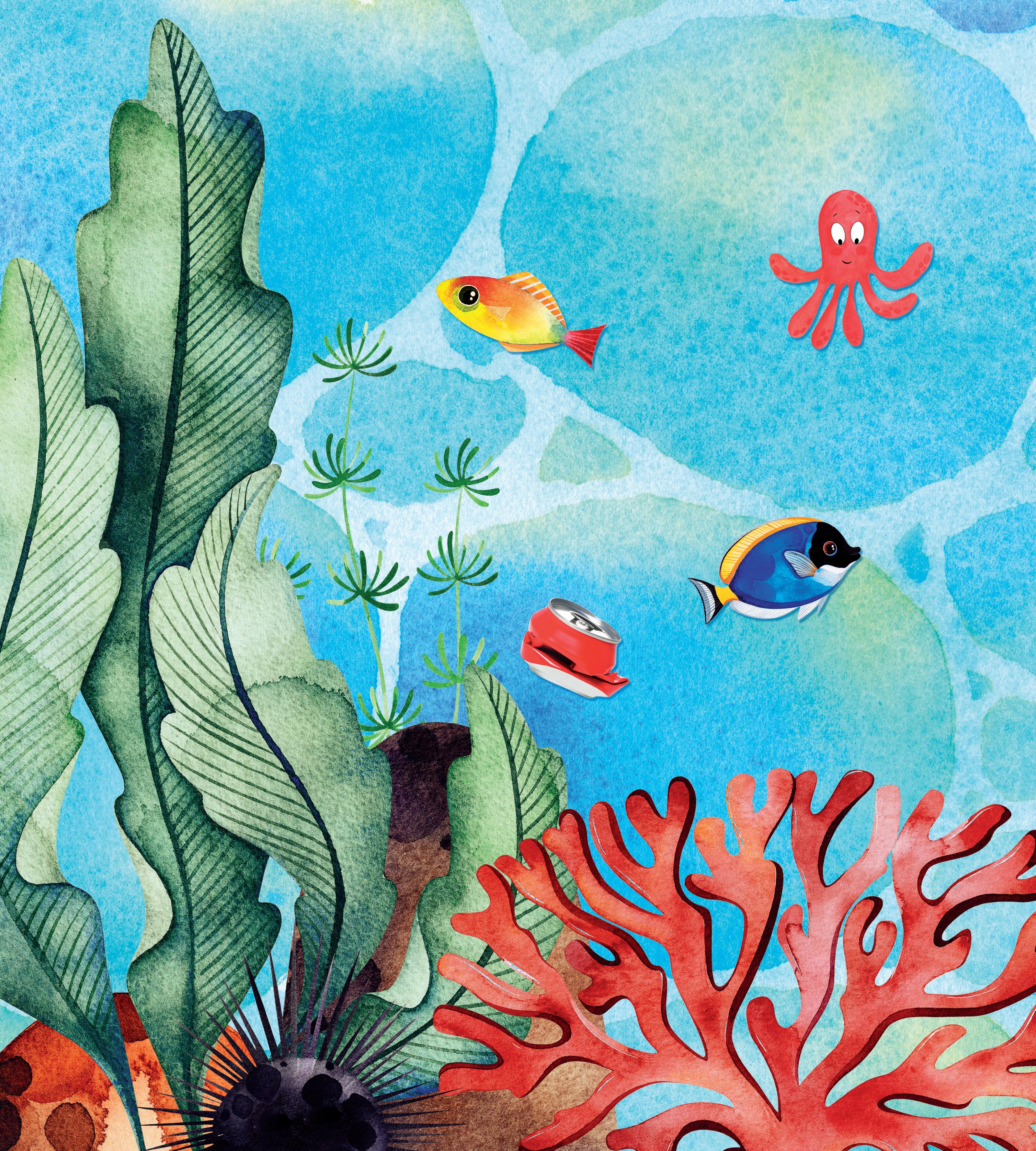 RISPETTIAMO il MARE ! OSSERVA E INDICA CHE COSA INQUINA IL MARE. RIPULISCI LE ACQUE: ELIMINA I RIFIUTI CON UNA X E RIEMPI IL MARE DI PESCI, ATTACCANDO GLI STICKERS. STICKER STICKER STICKER