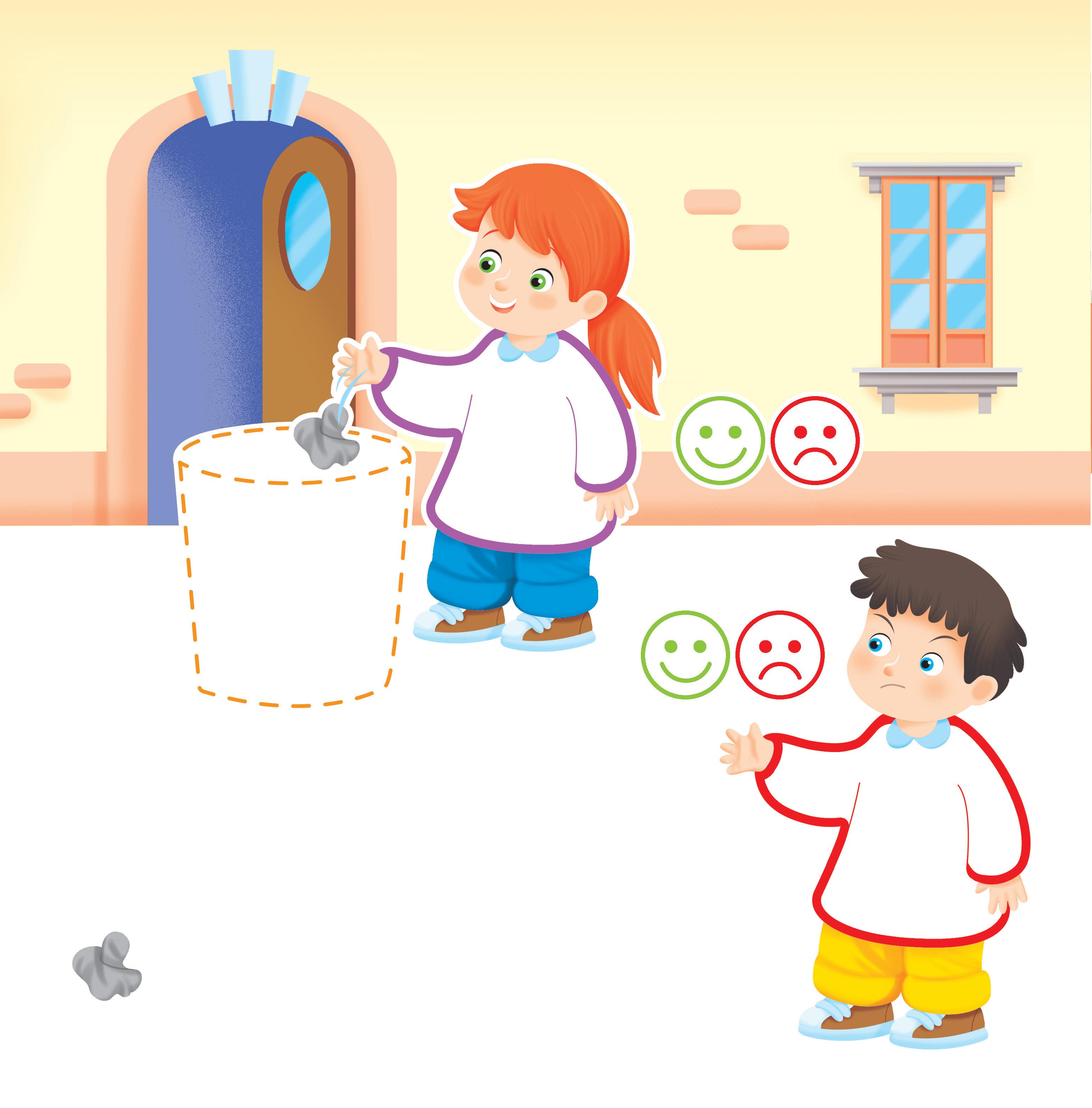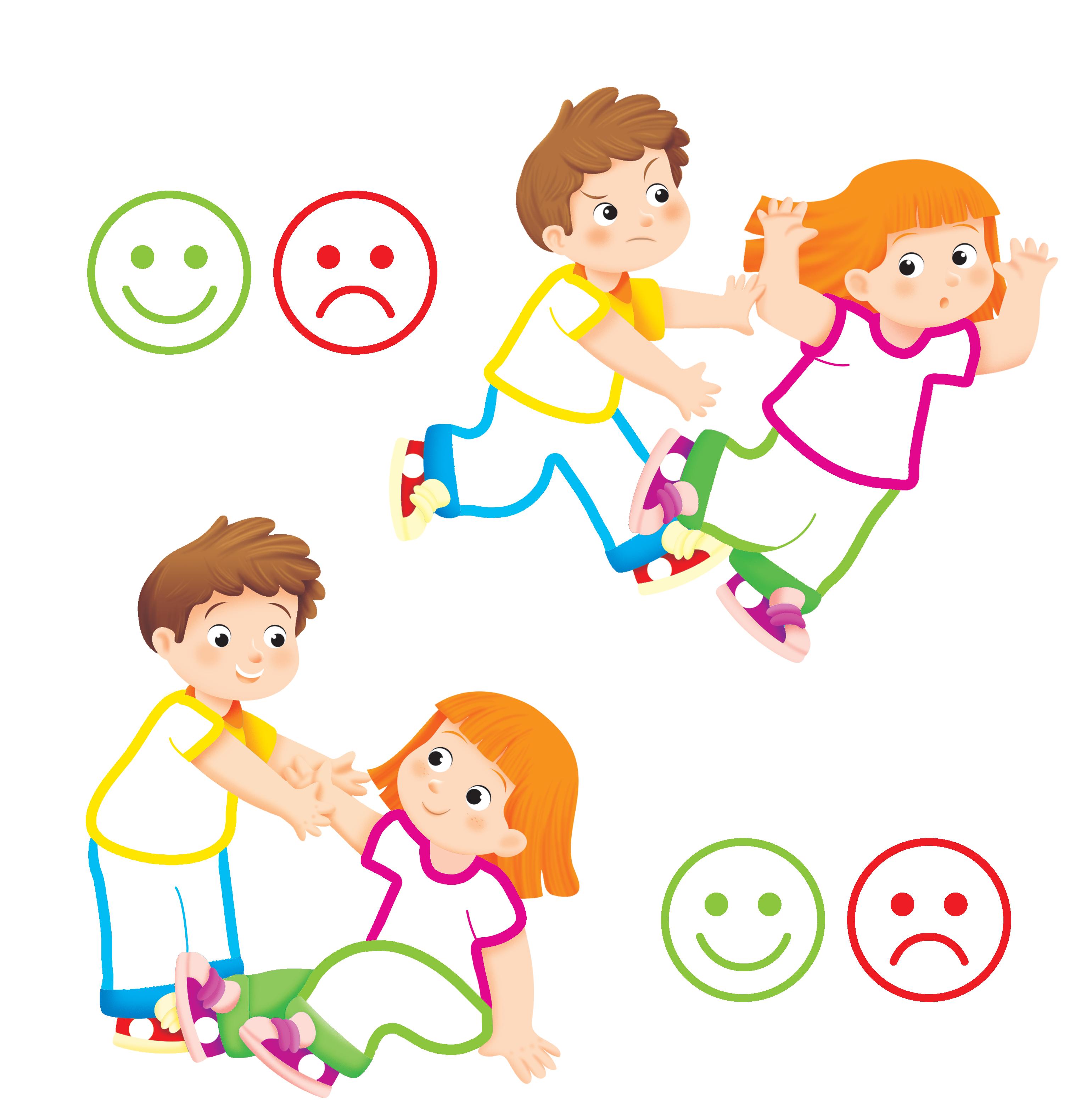 Completa il cerchietto vicino ai bambini che si comportano bene. Colora.