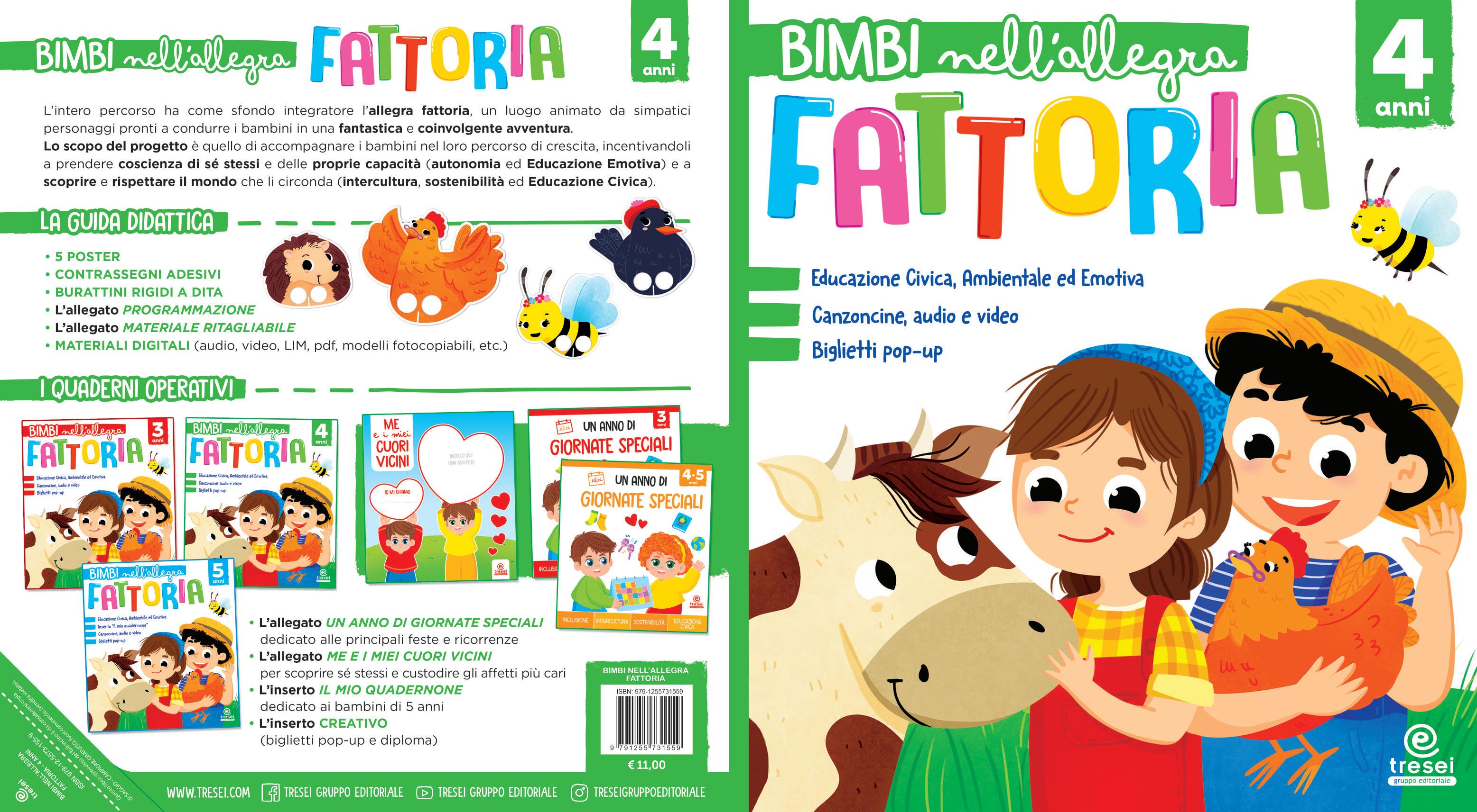 Il progetto, dedicato alla Scuola dell’Infanzia, è composto dai quaderni operativi (suddivisi nelle tre fasce d’età 3, 4 e 5 anni) e dalla Guida Didattica per l’insegnante. L’intero percorso ha come sfondo integratore l’allegra fattoria, un luogo animato da simpatici personaggi pronti a condurre i bambini in una fantastica e coinvolgente avventura