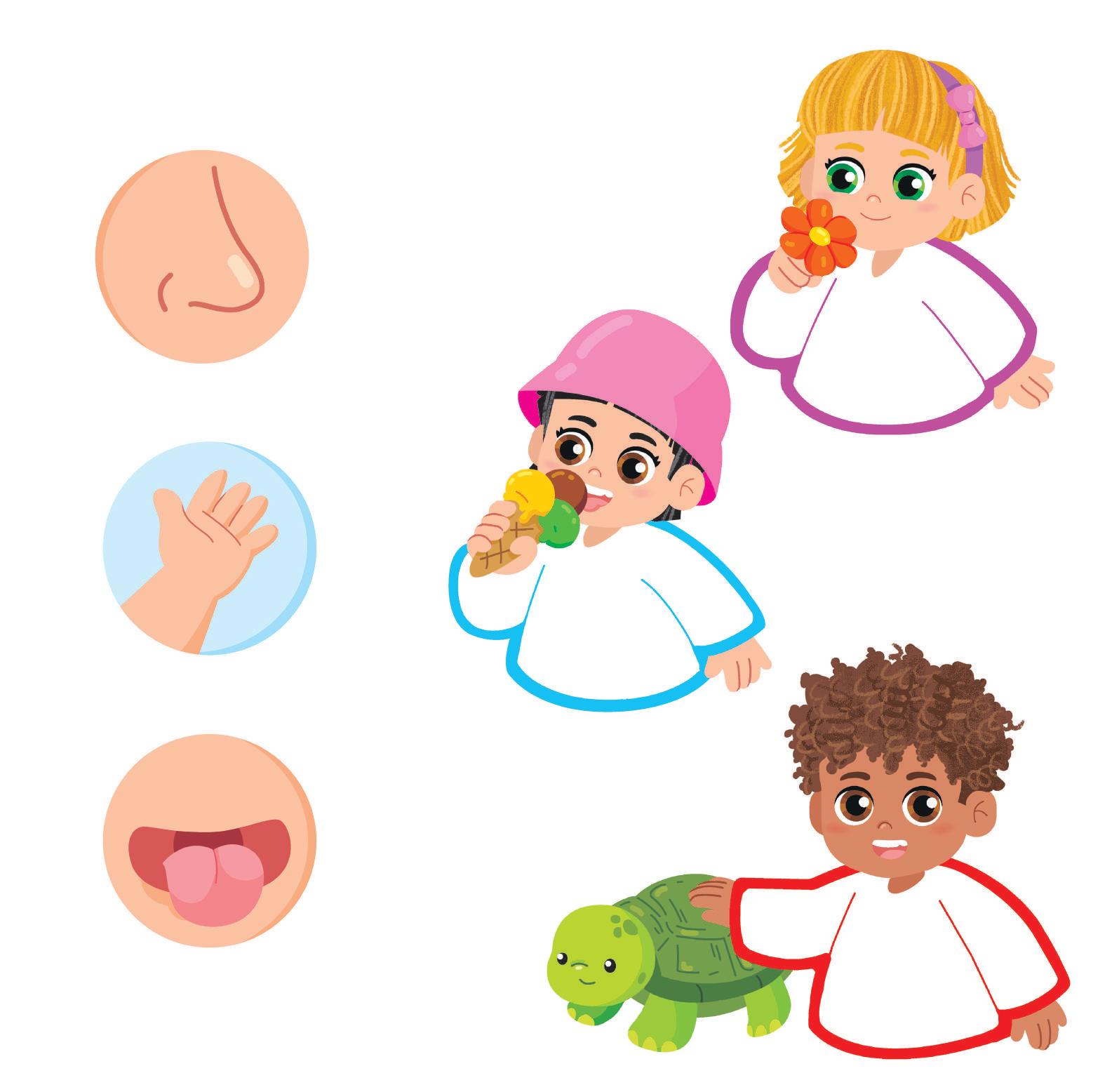 NOMINA I SENSI RAFFIGURATI. DESCRIVI OGNI SCENETTA E COLLEGALA AL SENSO CORRISPONDENTE.