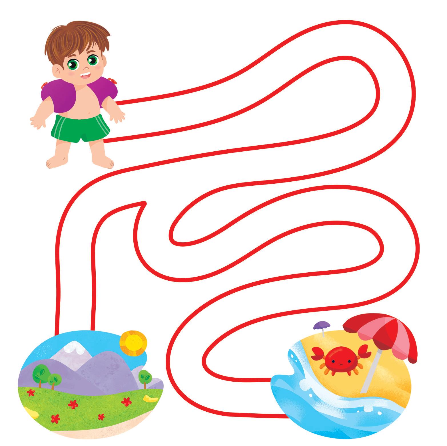 OSSERVA IL BAMBINO. DOVE STA ANDANDO? AL MARE O IN MONTAGNA? TRACCIA IL PERCORSO CORRISPONDENTE.